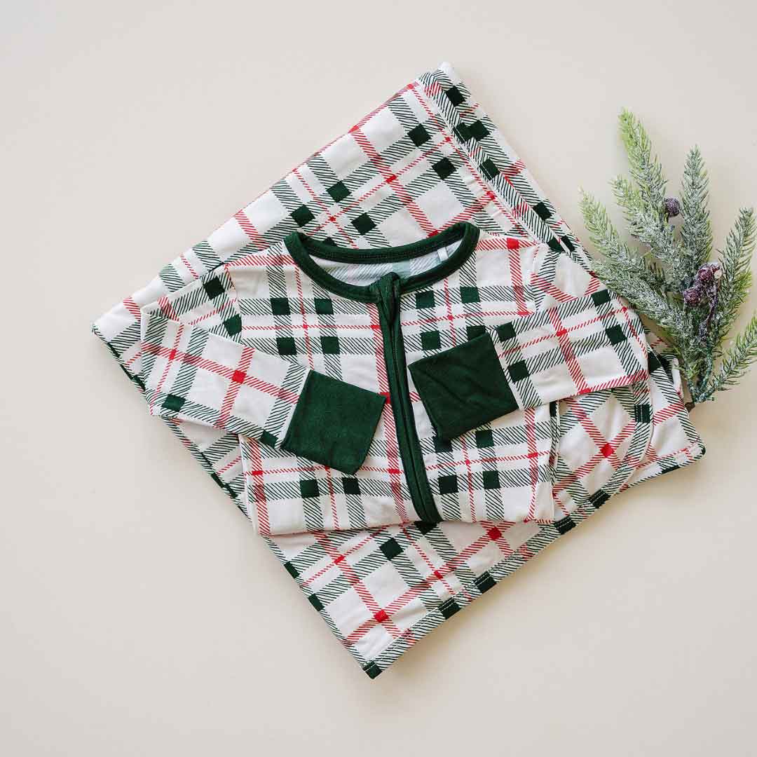 Stretchy Swaddle Blanket | Green Christmas Plaid