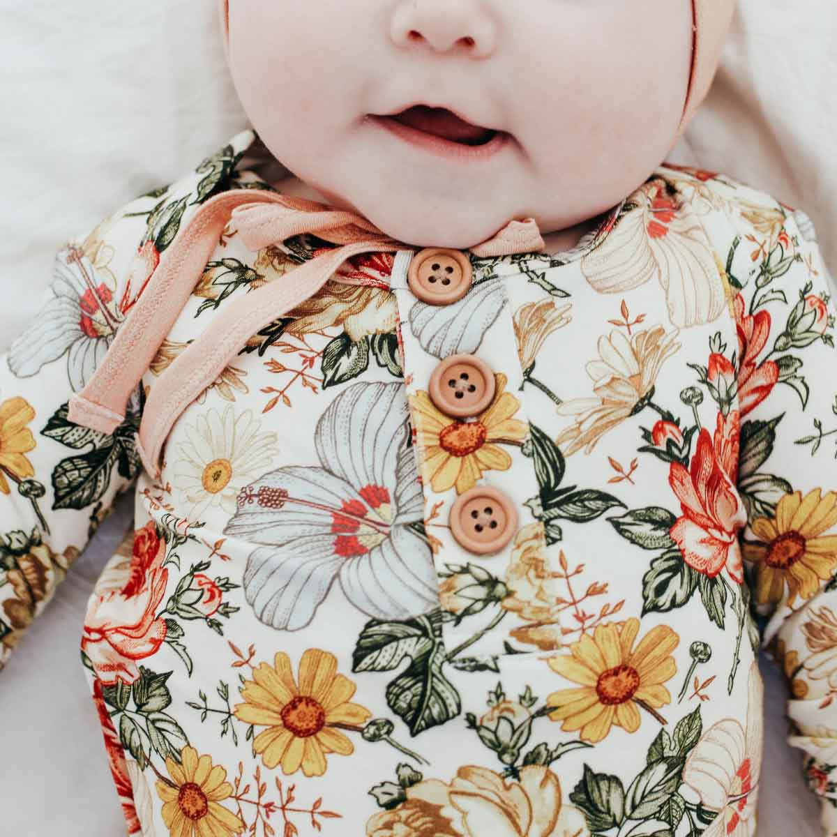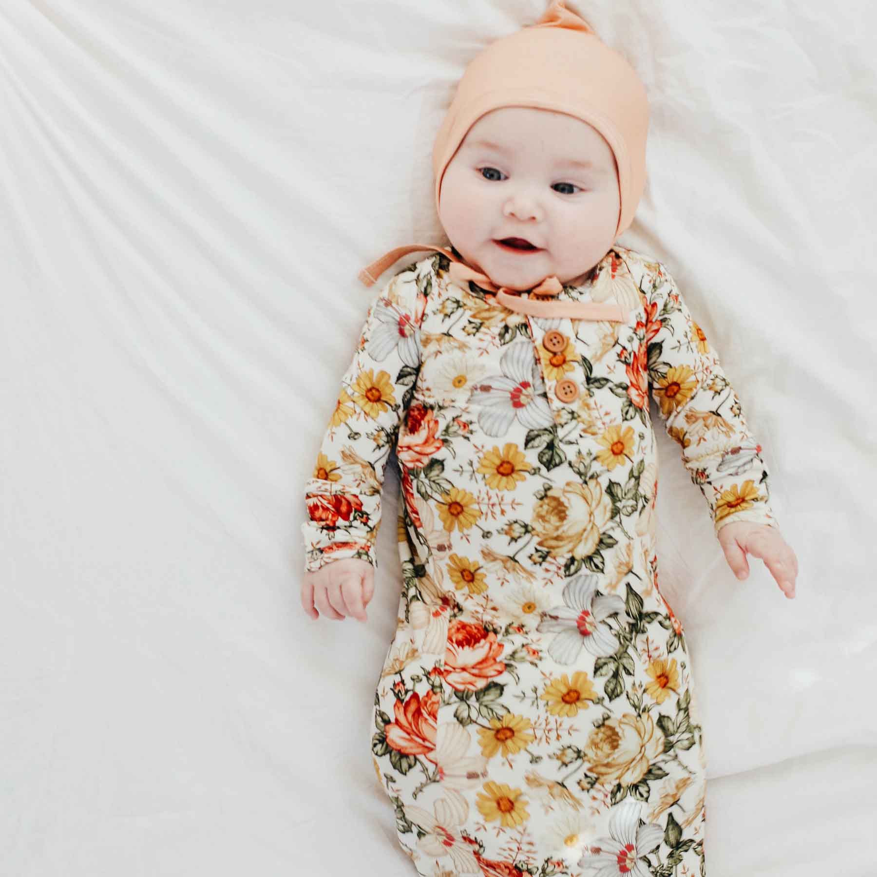 Knotted Baby Gown & Bonnet | Vintage Floral